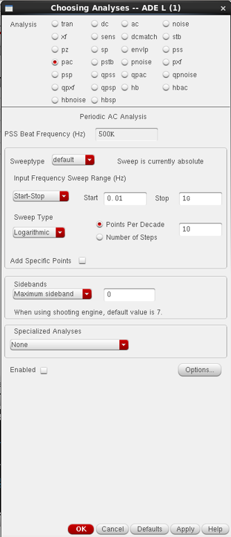 Fill in frequency range and the required frequency step. Sidebands should be 0.