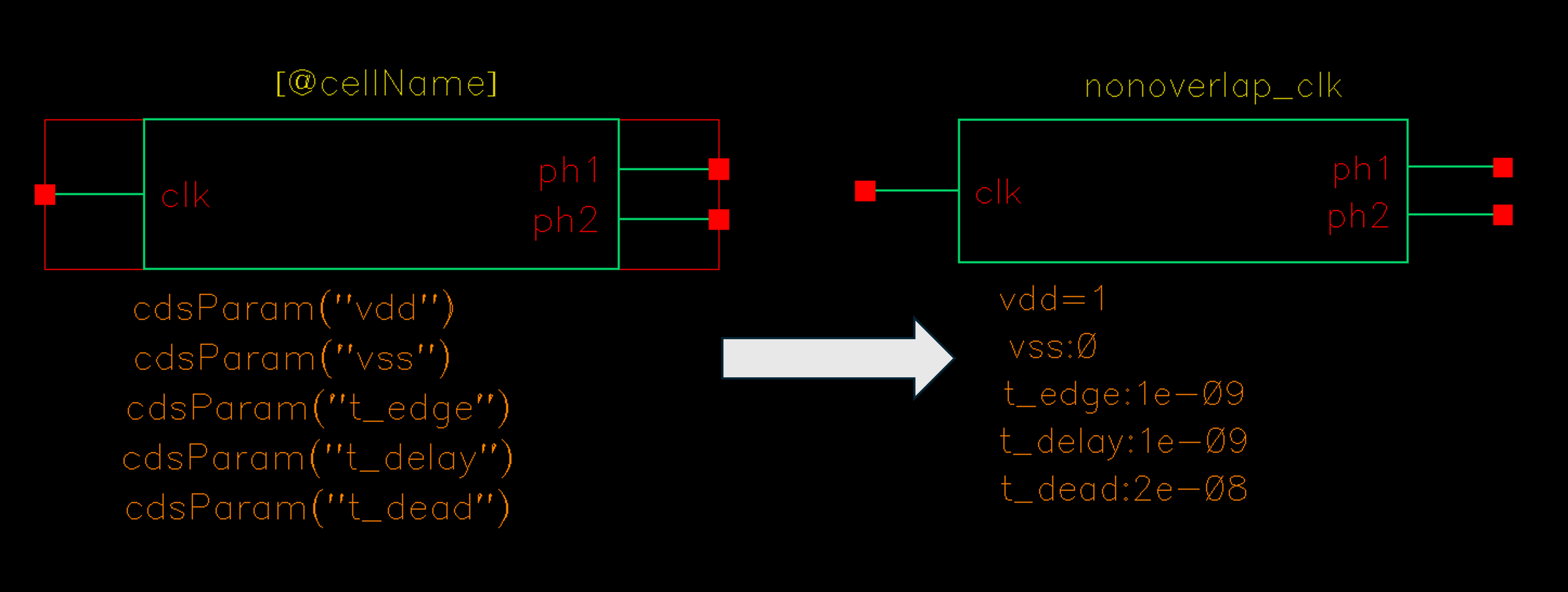 Then select Analog Device Annotate and enter Verilog-A parameter name in "cdsParam("your_param")". Repeat that action for all Verilog-A model parameters that you want to be displayed. After that, you will see specified parameters on schematic as show below: