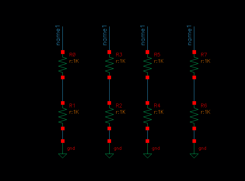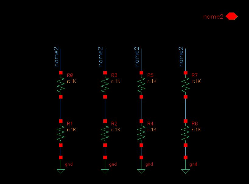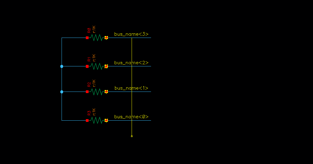 Sometimes we need to connect a bus to a multiple wires (i.e. VDD/VSS for a digital bus). In order to do that, there is no need of creating multiple voltage sources to define the code. The simpler way of doing that is shown on the picture below: