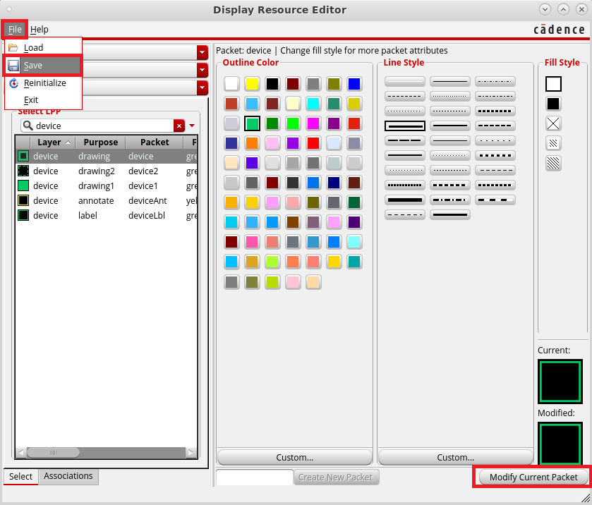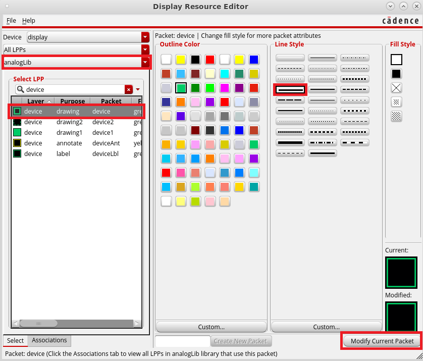 Press Modify Current Packet to save. To see changes, in Schematic window perform: View → Redraw (F6):
