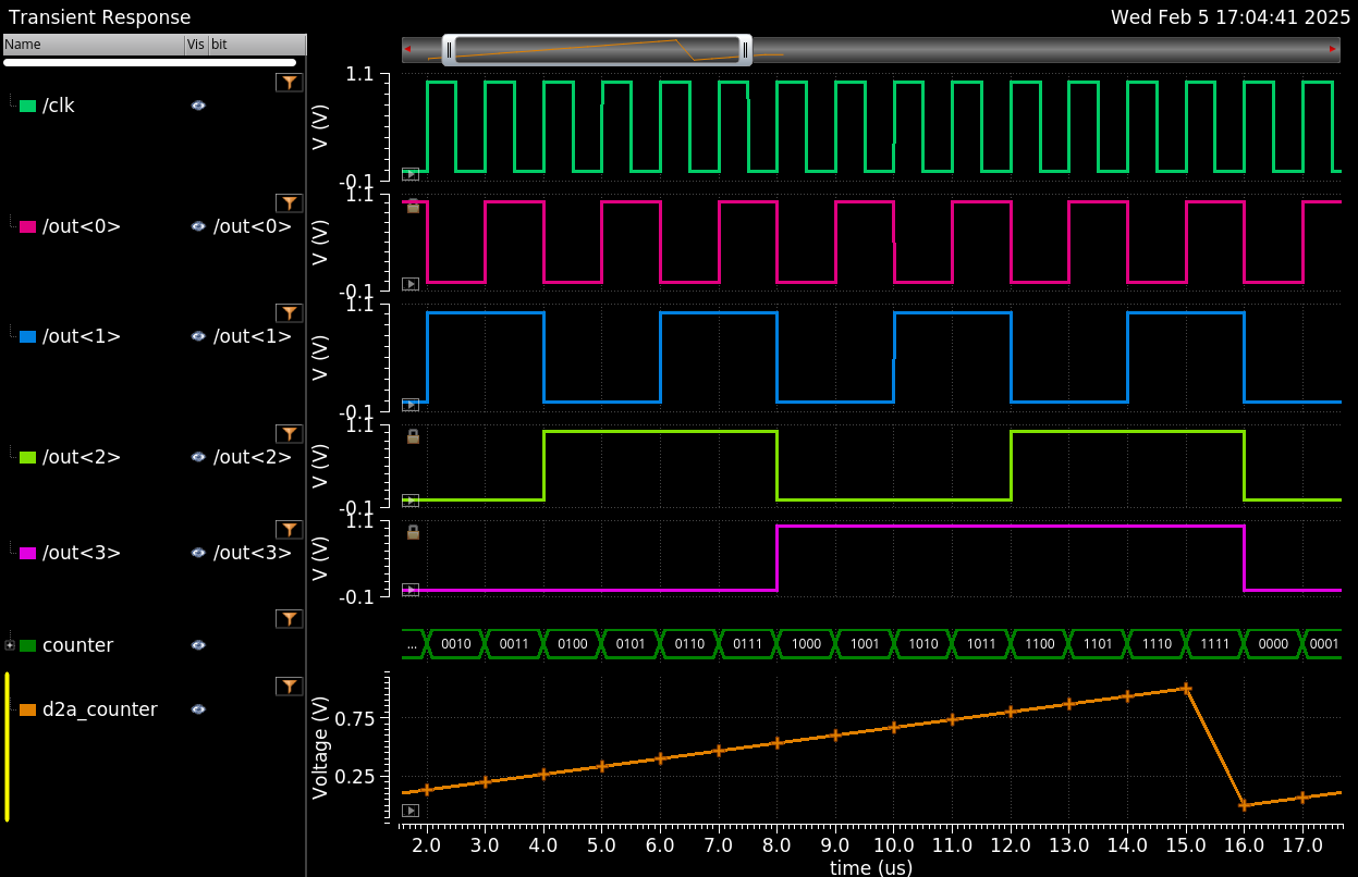 This article contains Verilog-A model for a binary counter, which counts up or down at the edge of the clock, when en is high.
